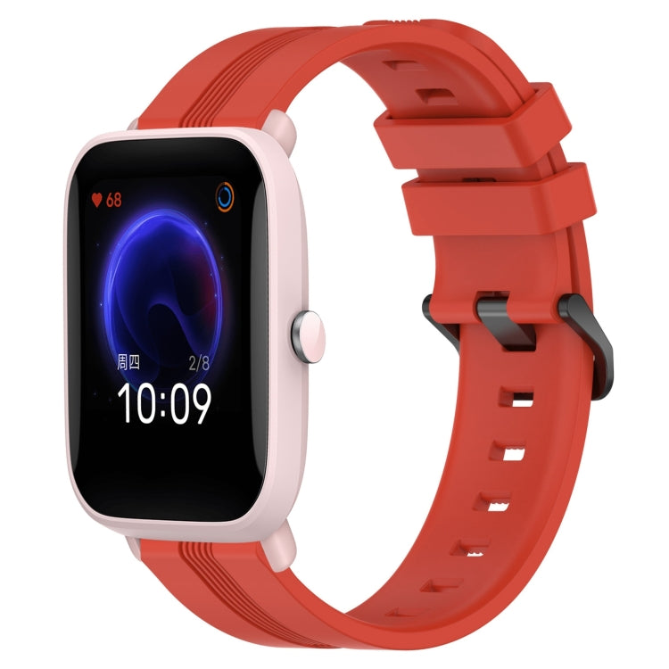 Banda de Reloj para Amazfit Pop Pro 20mm Silicona con Rayas Cóncavas (Rojo)