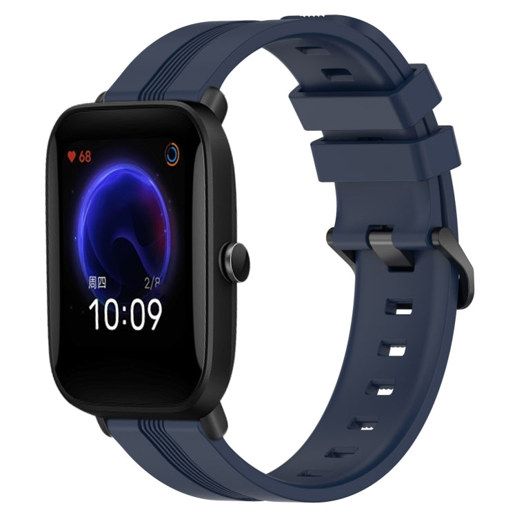 Banda de Reloj de Silicona para Amazfit Pop 20mm con Rayas Cóncavas (Azul Marino)