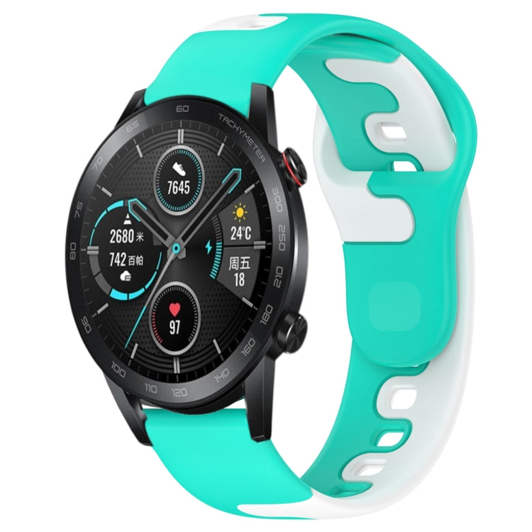 Correa de Silicona para Honor Magicwatch2 42mm 20mm Doble Color (Cian + Blanco)