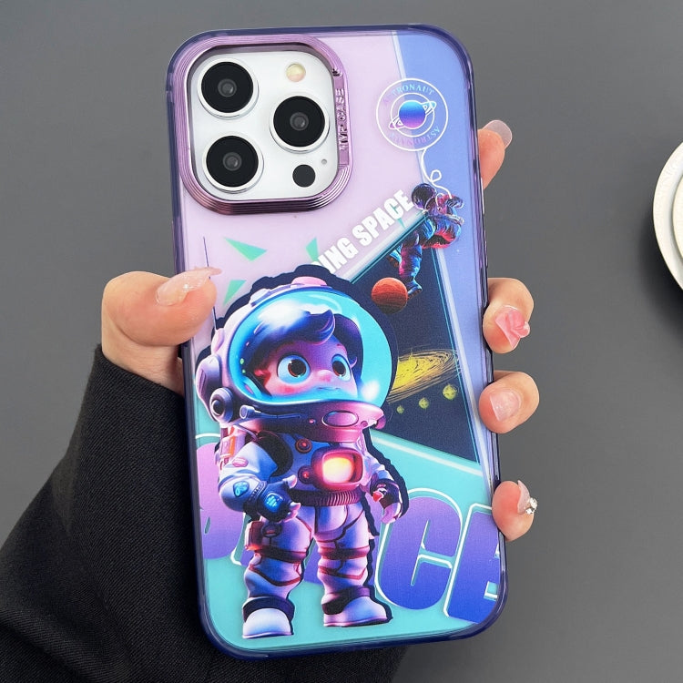 Estuche para Teléfono iPhone 13 Pro con Astronauta Colorido Grabado (Pequeño) (Púrpura)