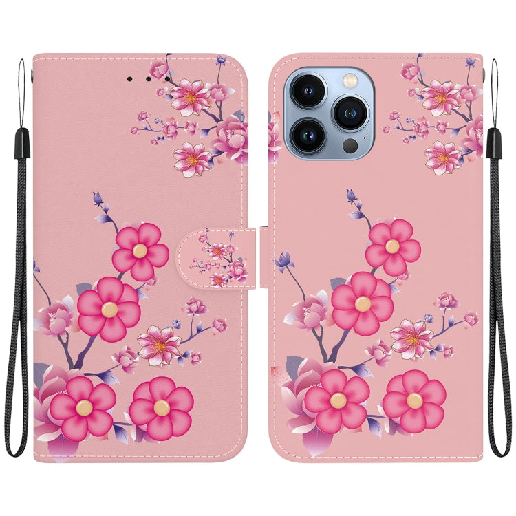 Funda para iPhone 13 Pro Cuero Dibujo Coloreado Textura Cristal (Flores de Cerezo)