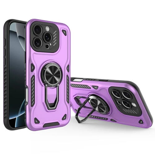 Funda para iPhone 16 Pro Max Soporte Giratorio Metal Carcasa Magnética TPU PC (Morado)