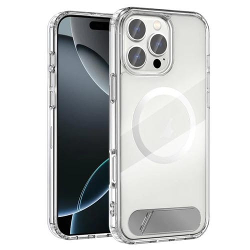 Funda híbrida TPU y PC Transparente Magsafe para iPhone 16 Pro Max con Soporte (Morado)