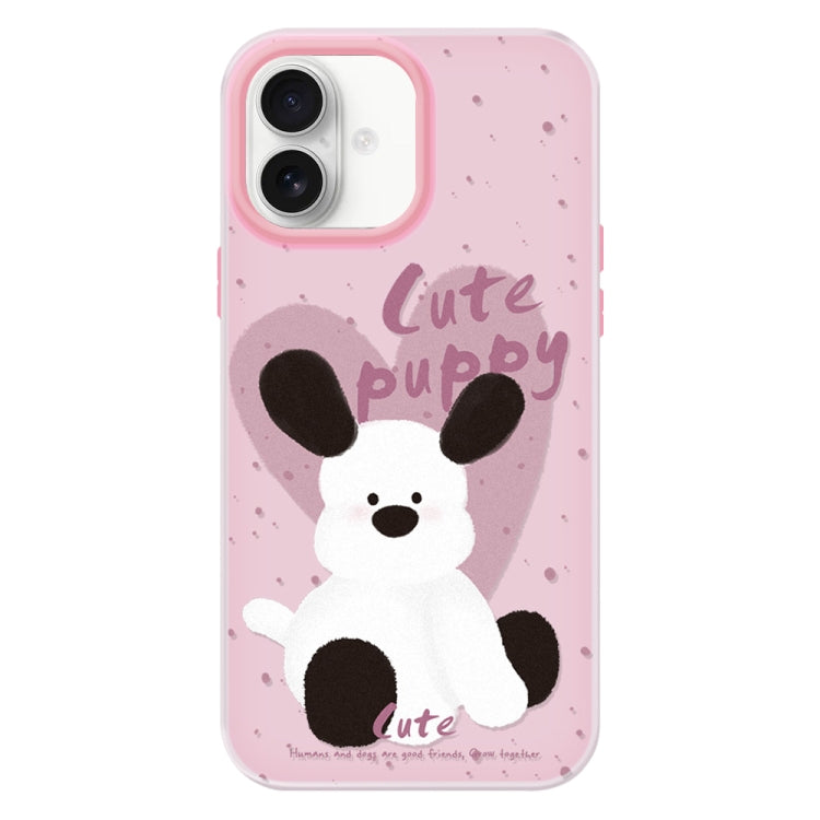 Funda híbrida TPU Policarbonato iPhone 16 Plus con forma de cachorro (Rosa)