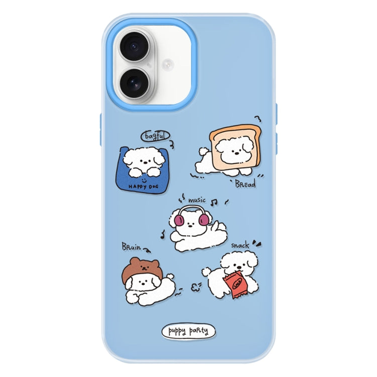 Funda híbrida TPU y PC iPhone 16 Tacto Sedoso y Gelatinoso (Puppy Party)