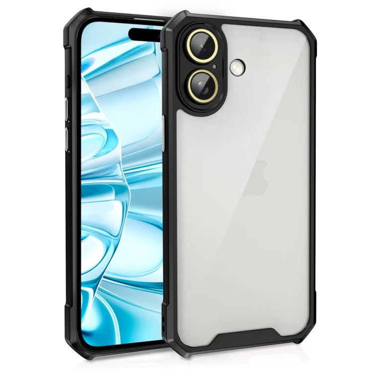 Funda Acrílico a Prueba de Golpes para iPhone 16 Plus con Película Vidrio Lente (Negra)