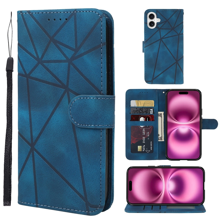Funda para iPhone 16 Plus Cuero Líneas Geométricas Tacto Agradable (Azul)