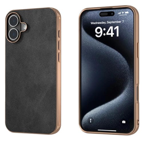 Funda Protectora iPhone 16 Textura Piel de Vaca Dos Colores Nanogalvanización (Negra)