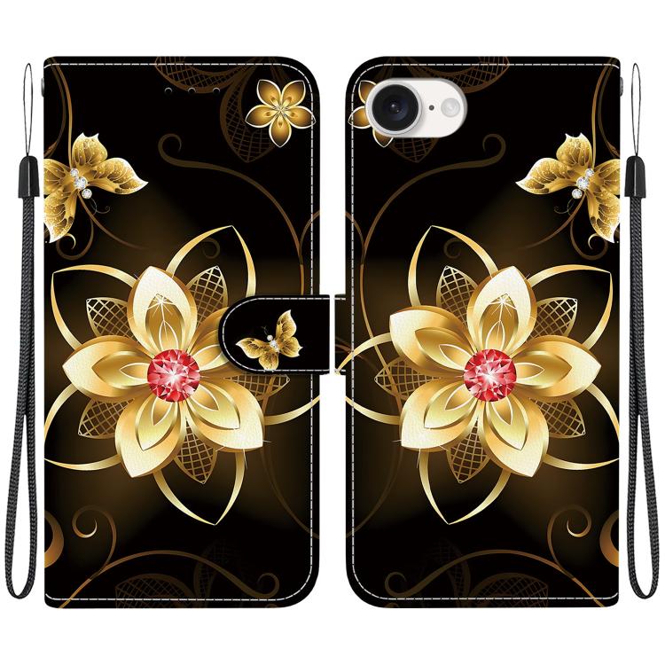 Funda de Cuero para iPhone 16E con Dibujo de Colores y Textura de Cristal (Flor Dorada)