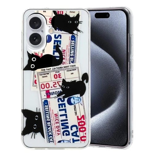 Funda para Teléfono TPU Apple iPhone 16 Plus Patrón de Pintura Colorida (Gato Negro)