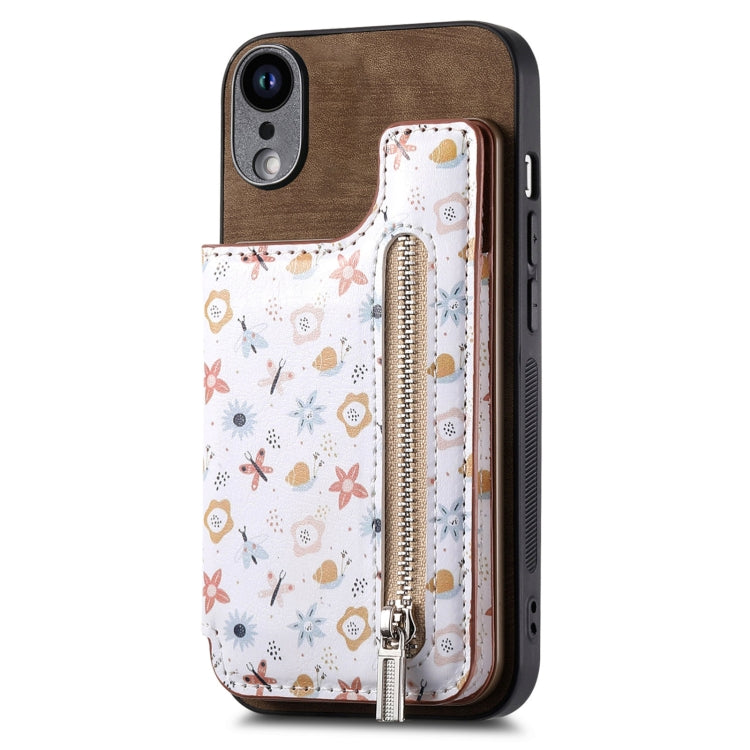 Funda Trasera para iPhone Xr con Billetera y Cremallera Pintada Retro (Marrón)