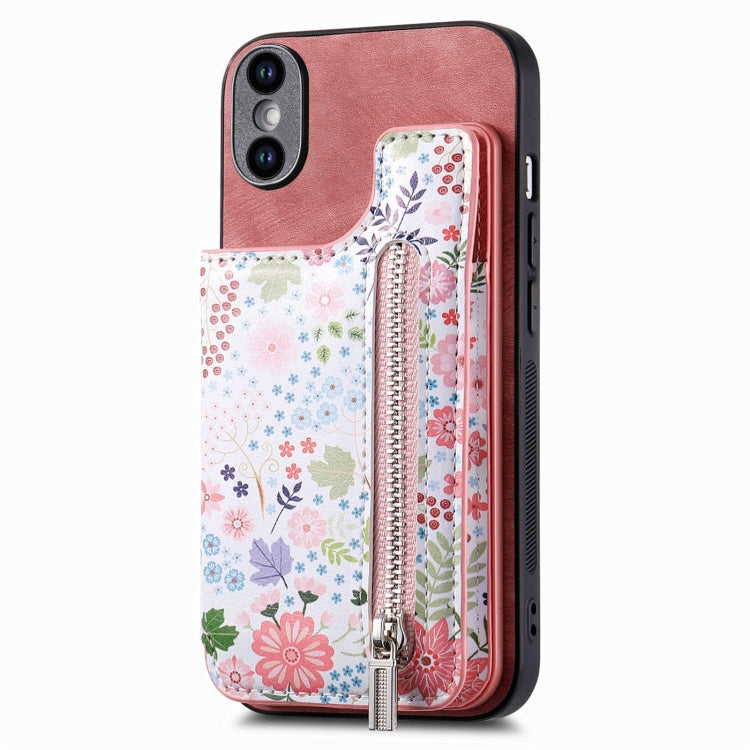 Funda Trasera para Teléfono iPhone X/Xs con Billetera y Cremallera Pintada Retro (Rosa)