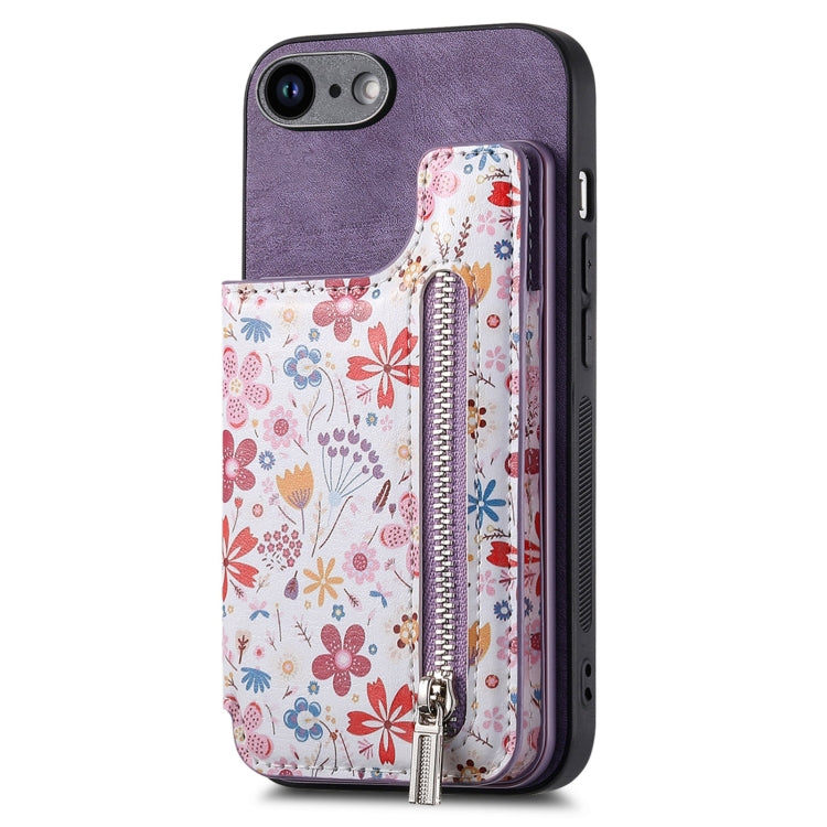 Funda Trasera para iPhone 6/6S con Billetera y Cremallera Pintada Retro (Púrpura)