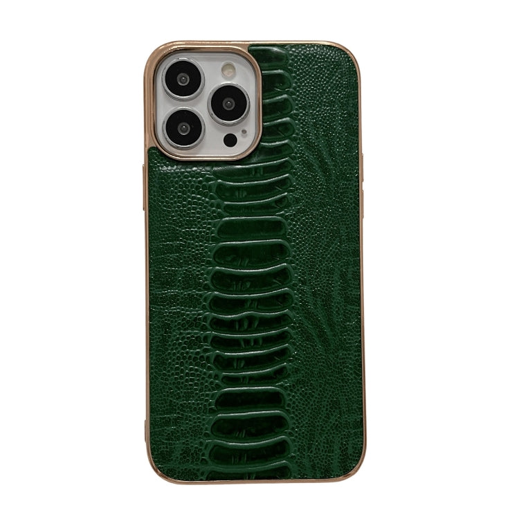 Funda de Teléfono Pinshang iPhone 13 Pro Galvanoplastia Nano Cuero Genuino (Verde)
