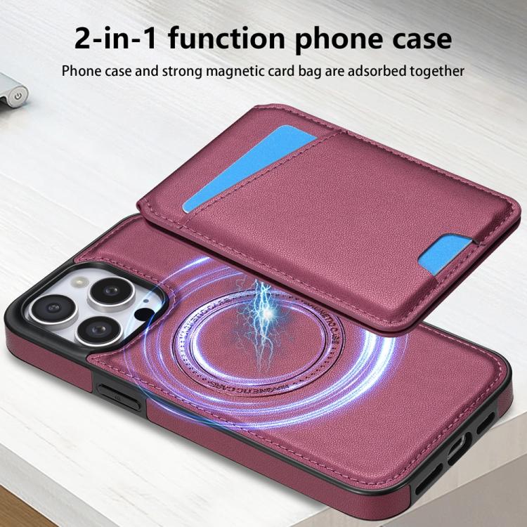 Funda para Teléfono Magsafe iPhone 16 Pro Max con Tarjetero Desmontable (Rojo Vino)