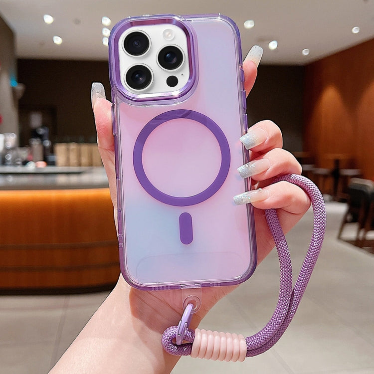 Estuche para Teléfono Magsafe iPhone 16 Pro Max con Correa para Muñeca (Morado)