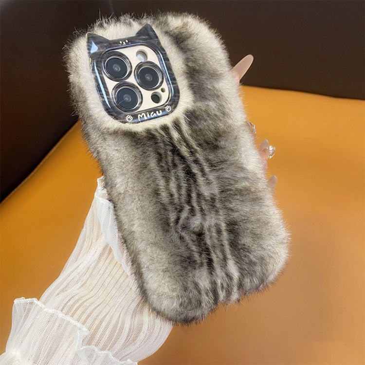Funda de Silicona Cobertura Total iPhone 16 Pro Diseño Gato de Peluche (Gris)