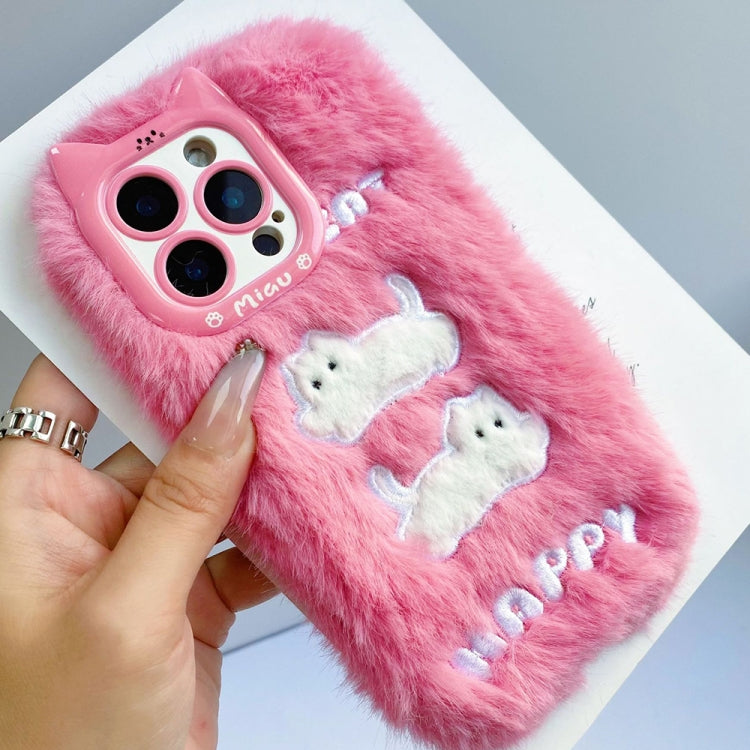 Funda de Teléfono iPhone 16 Pro Bordado Felpa Cobertura Total (Cerdo Rosa + Blanco)