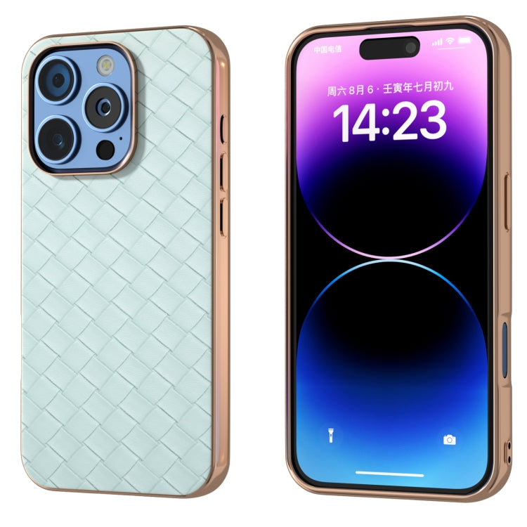 Funda teléfono Pu textura tejida marco galvanizado iPhone 16 Pro (Verde Claro)