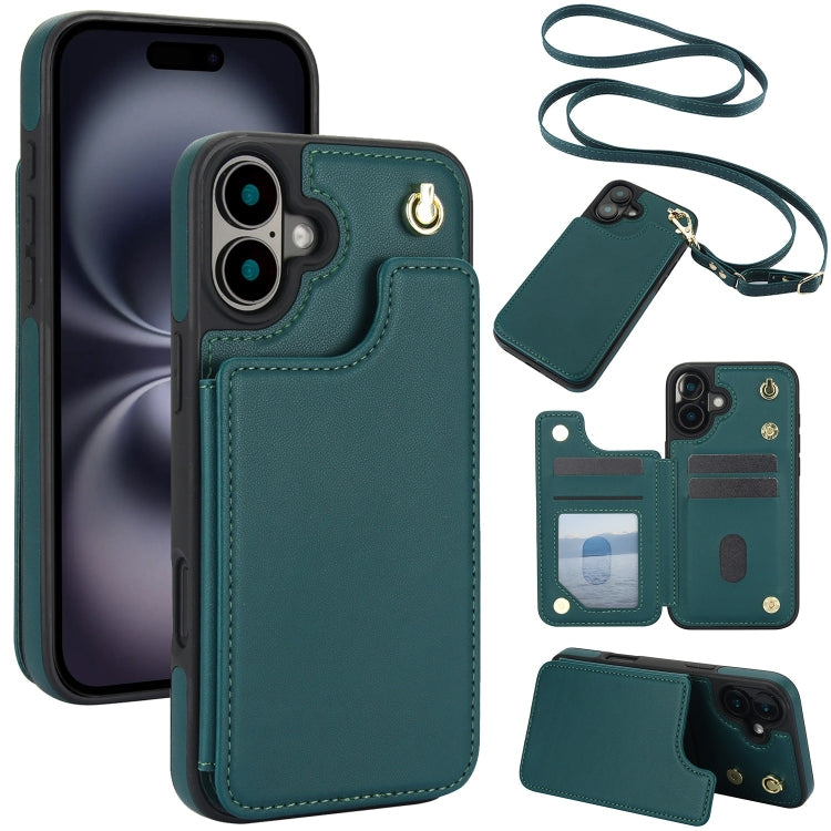 Funda de Cuero Tipo Billetera con Doble Hebilla Cruzada para iPhone 16 (Verde)