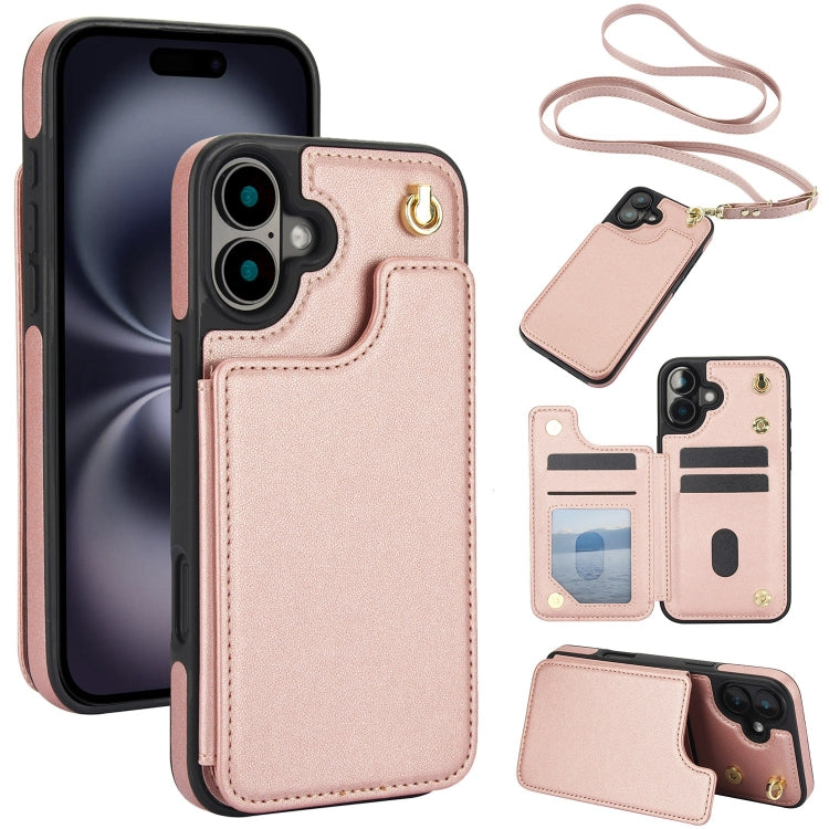 Funda tipo Billetera de Cuero para iPhone 16 con Doble Hebilla Cruzada (Oro Rosa)