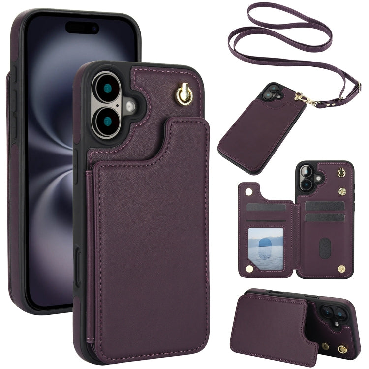 Funda Tipo Billetera Cuero Doble Hebilla Cruzada para iPhone 16 (Morado Oscuro)