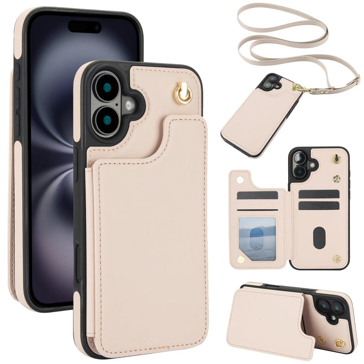 Funda Tipo Billetera Cuero Doble Hebilla Cruzada para iPhone 16 (Albaricoque)