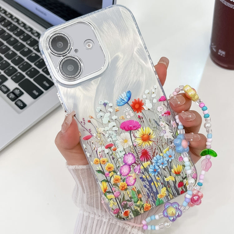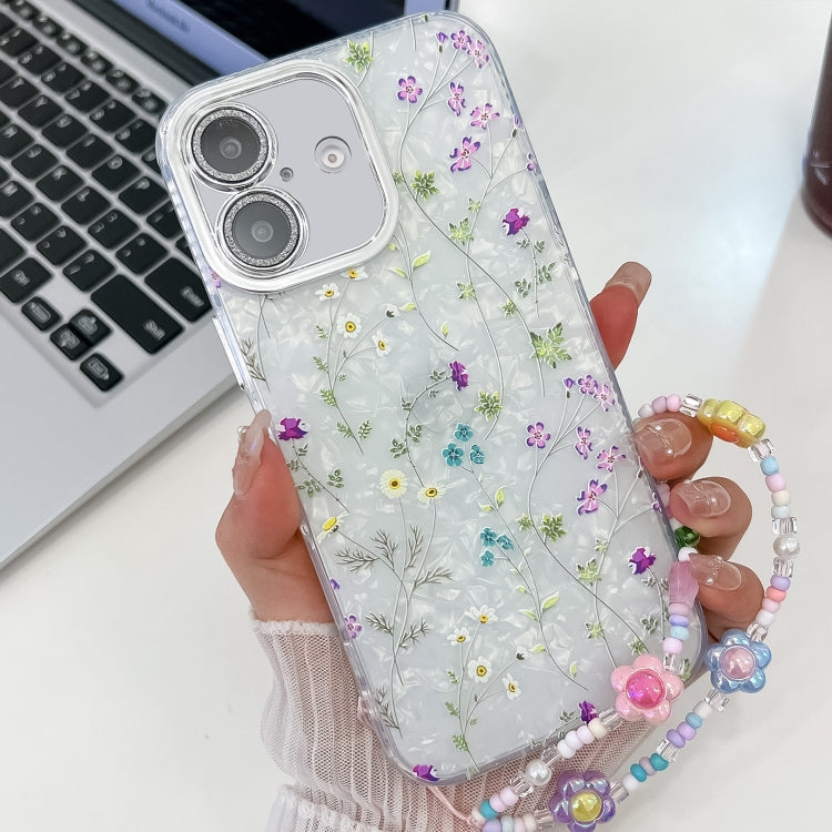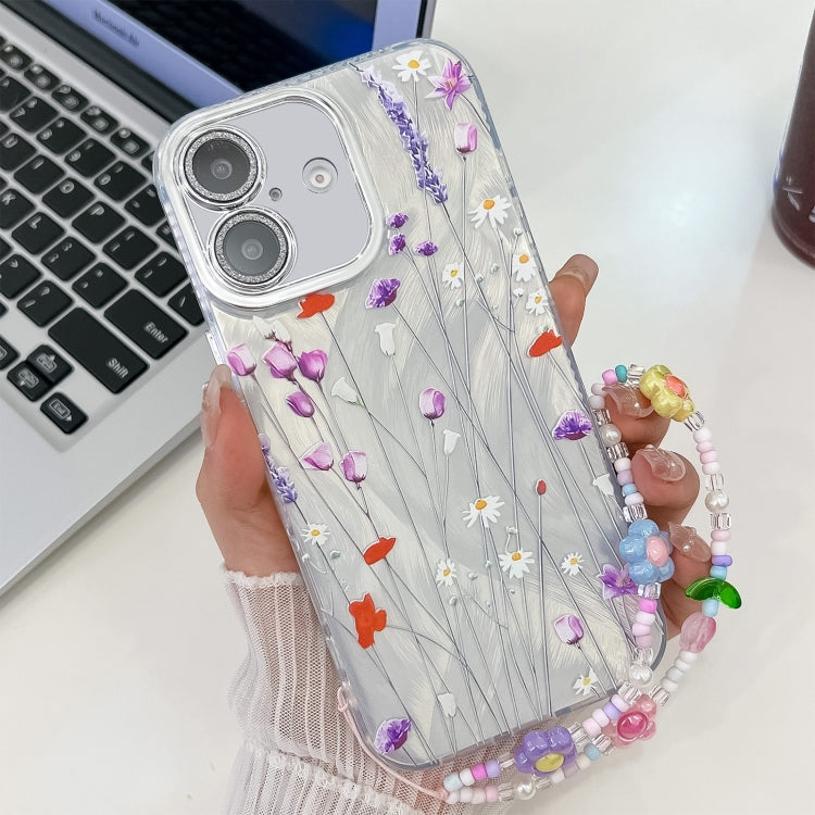 Funda para Teléfono TPU con Pulsera Textura Flores Galvanizadas iPhone 16