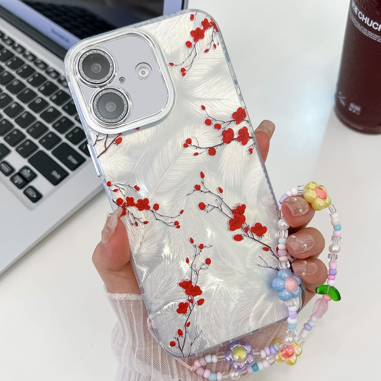 Funda de teléfono TPU iPhone 16 textura flores galvanizadas (Flor de Ciruelo Rojo)