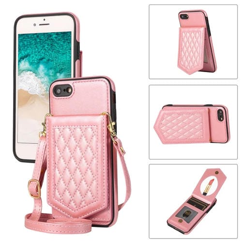Funda para iPhone 8 Plus / 7 Plus Rhombic Texture Rfid con Cordón y Espejo (Oro Rosa)