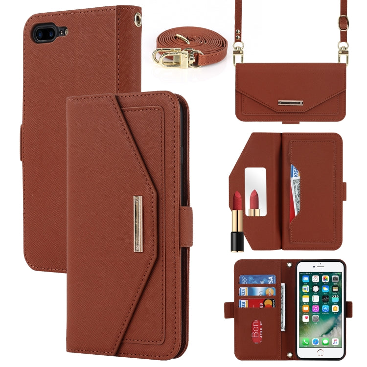 Funda para iPhone 8 Plus / 7 Plus Cross Texture Lanyard Leather Phone Case (Marrón)