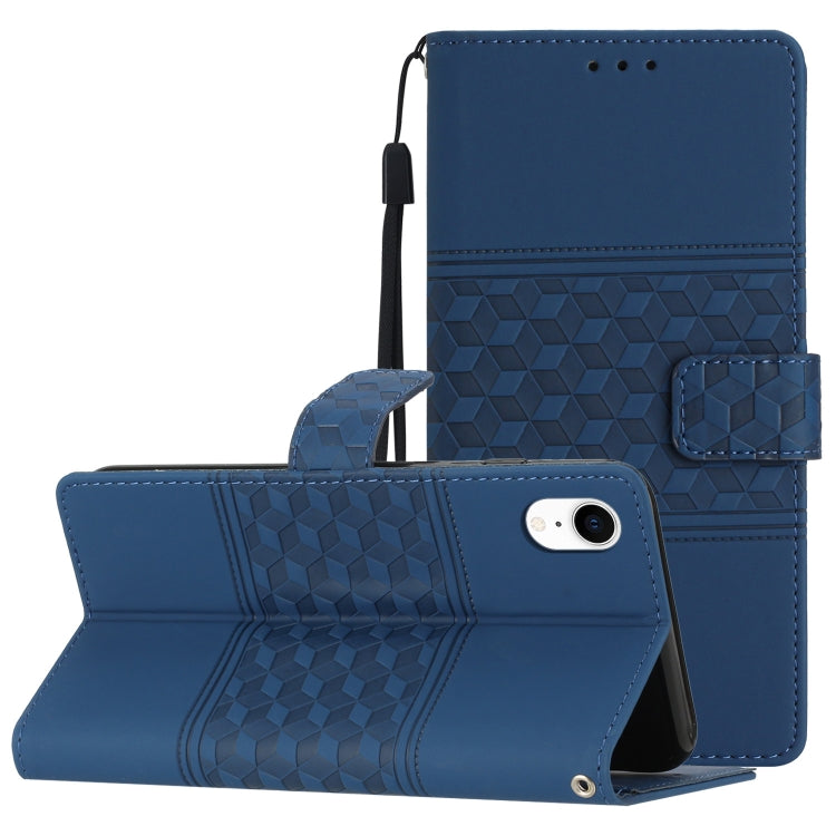 Funda de Cuero para iPhone Xr Diamond Embossed Skin Feel con Cordón (Azul Oscuro)