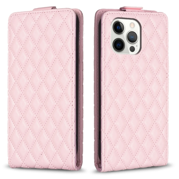 Funda de Cuero con Tapa Vertical para iPhone 12 Pro Max Diamond Lattice (Rosa)