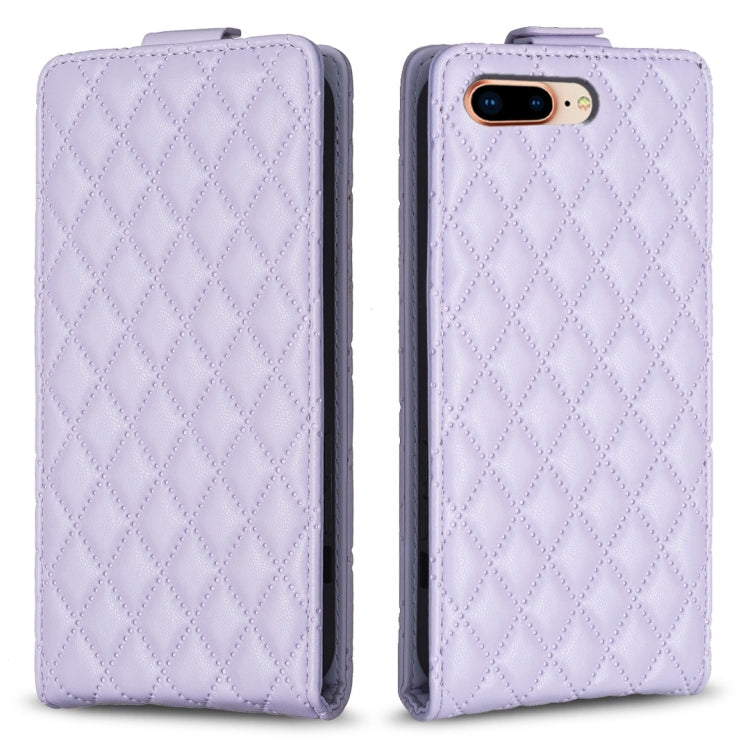 Funda de Cuero para iPhone 7 Plus y 8 Plus Diamond Lattice con Tapa Vertical (Púrpura)