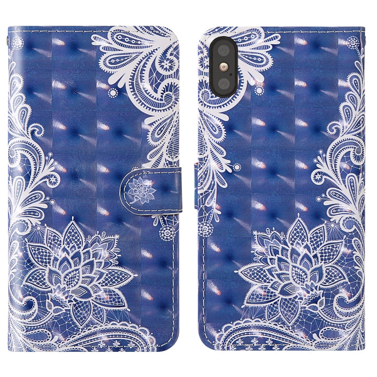 Funda para iPhone Xs Max TPU + Cuero PU con Soporte, Ranuras y Cordón (Encaje Blanco)