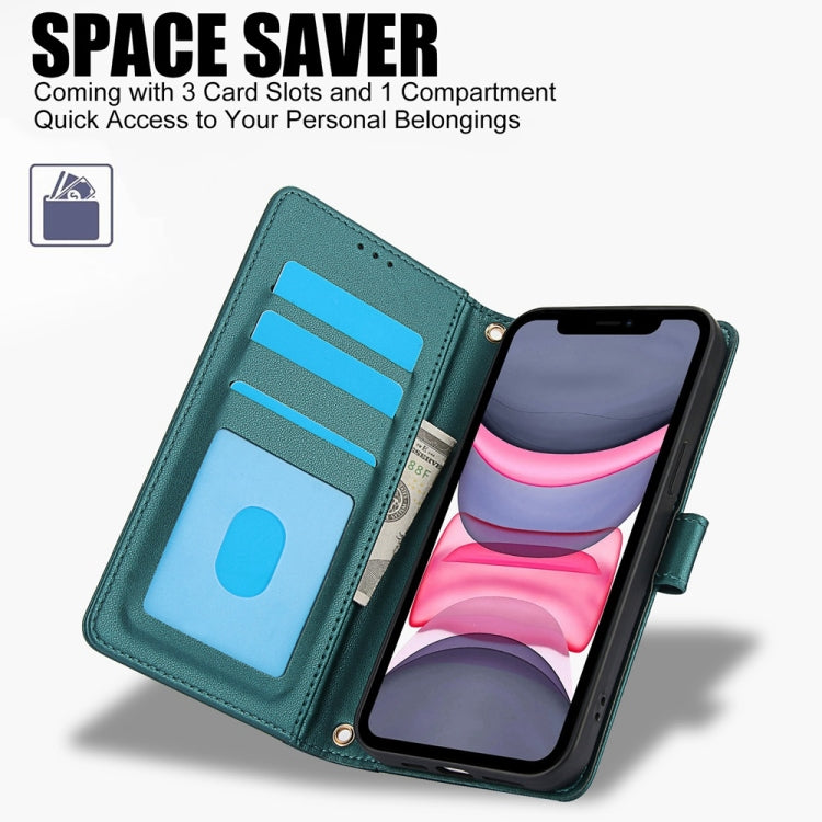 Funda Tipo Billetera Cuero con Cremallera en Forma de Rombo para iPhone Xr (Verde)