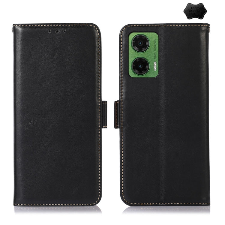 Funda Cuero Genuino Crazy Horse Magnética para Motorola Moto G35 (Negro)
