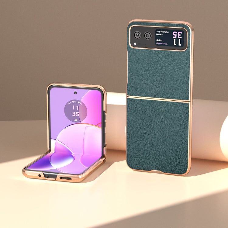 Funda para Motorola Razr 40 Nano Luolai Cuero Genuino Serie Plating (Verde Oscuro)