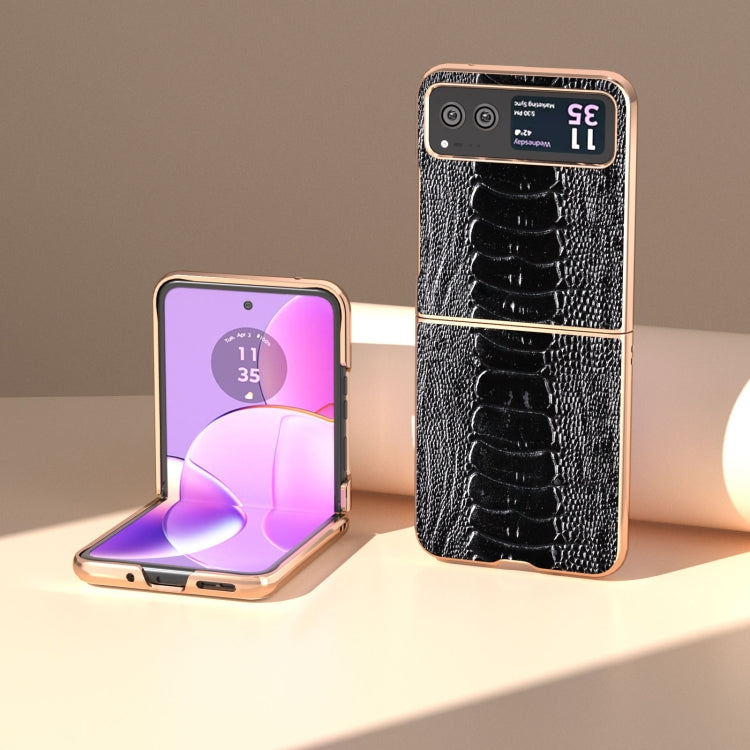 Funda para Motorola Razr 40 Cuero Genuino Textura de Avestruz con Nanochapado (Café)