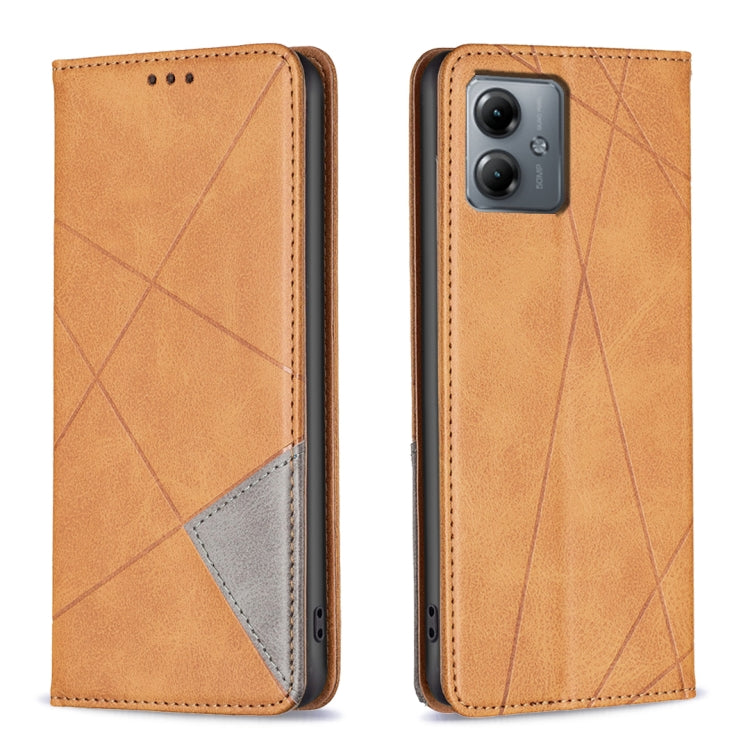 Funda de Cuero Magnética para Motorola Moto G14 4G con Textura de Rombo (Marrón)