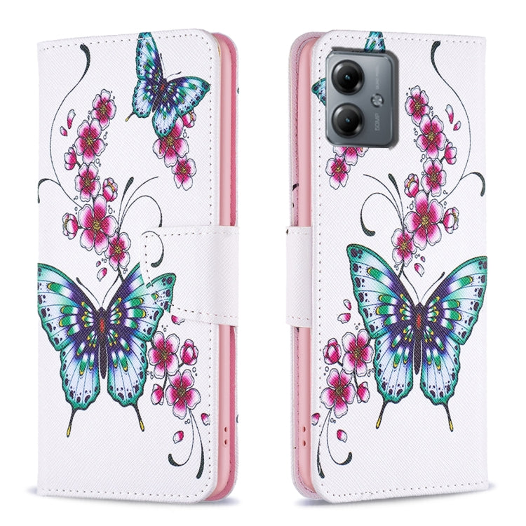 Funda de Cuero para Motorola Moto G14 4G con Patrón de Mariposa y Flores Coloreado