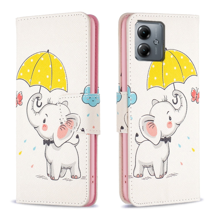 Funda de Cuero para Motorola Moto G14 4G con Patrón de Dibujo Coloreado (Elefante)