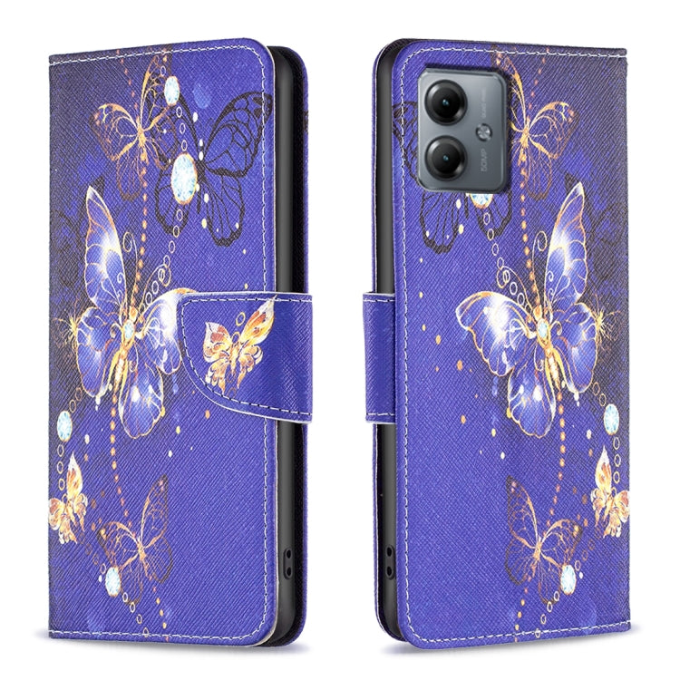 Funda de Cuero para Motorola Moto G14 4G con Patrón de Mariposa Púrpura