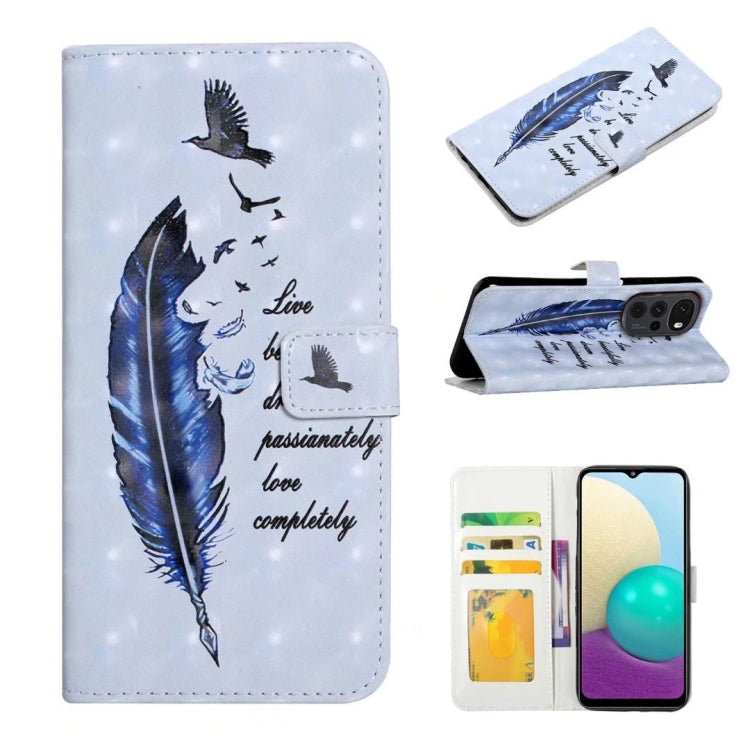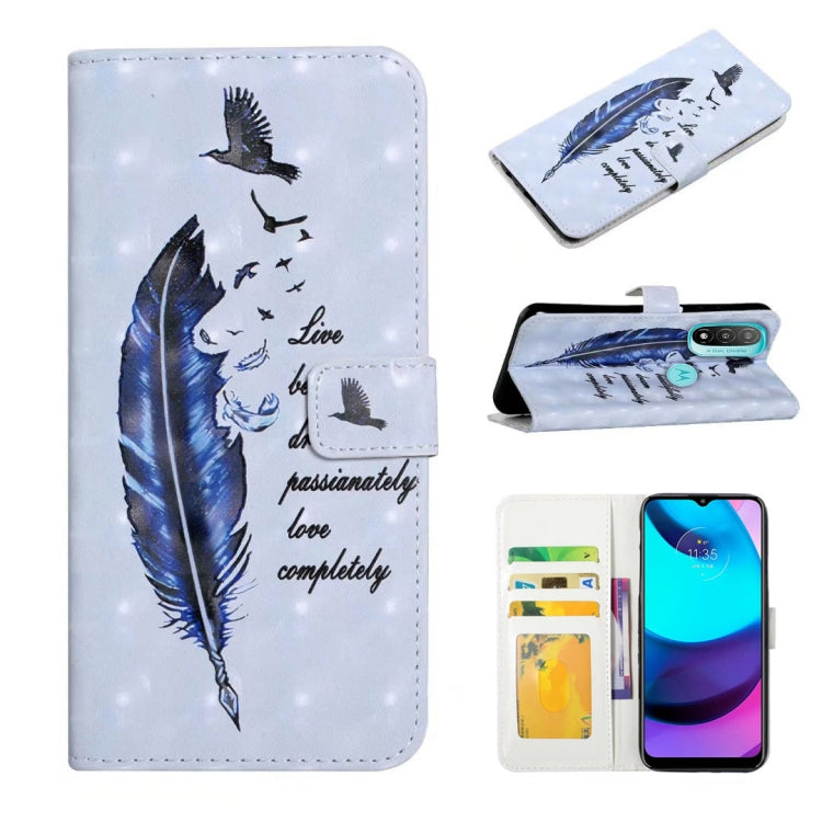 Funda de Cuero para Motorola Moto G22 con Dibujo 3D en Relieve al Óleo (Pluma Azul)