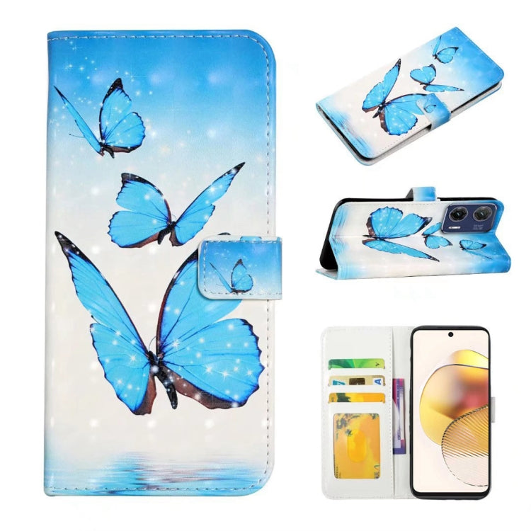 Funda de Cuero para Motorola Moto G73 con Dibujo 3D en Relieve al Óleo (3 Mariposas)