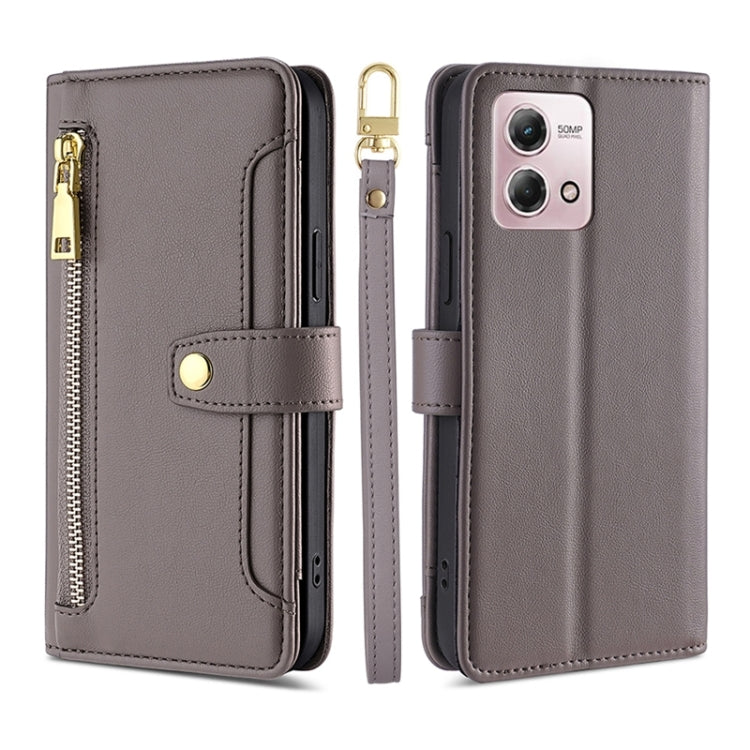Funda de Cuero Motorola Moto G Stylus 4G 2023 Lite con Billetera y Cremallera (Gris)