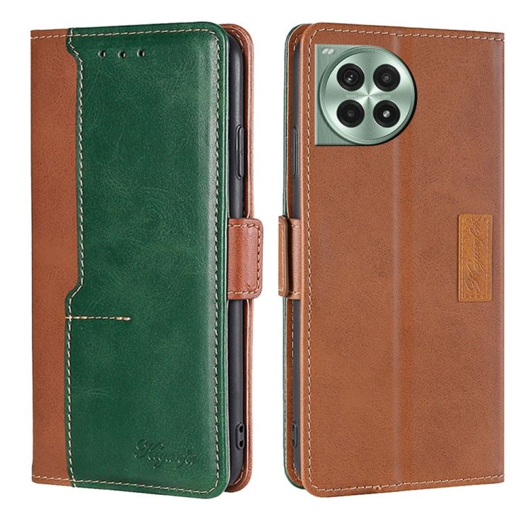 Funda de Cuero con Hebilla Lateral para OnePlus Ace 3 Pro 5G (Marrón Claro y Verde)