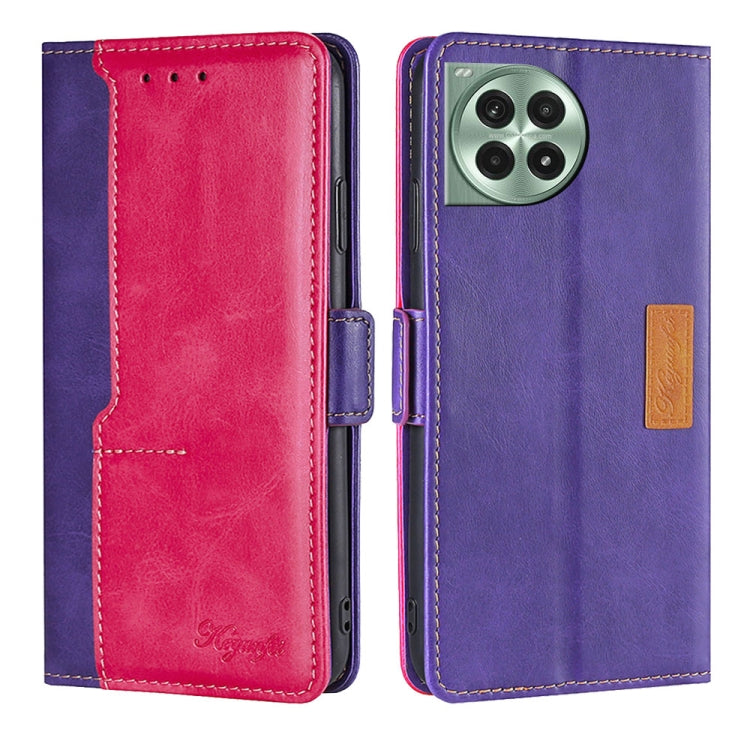 Funda de Cuero con Hebilla Lateral para OnePlus Ace 3 Pro 5G (Púrpura + Rojo Rosa)