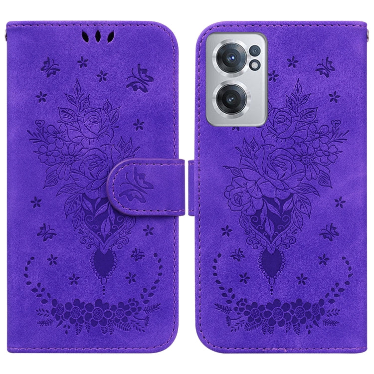 Funda para OnePlus Nord Ce 2 5G Butterfly Rose Foothip en Relieve de Cuero (Púrpura)