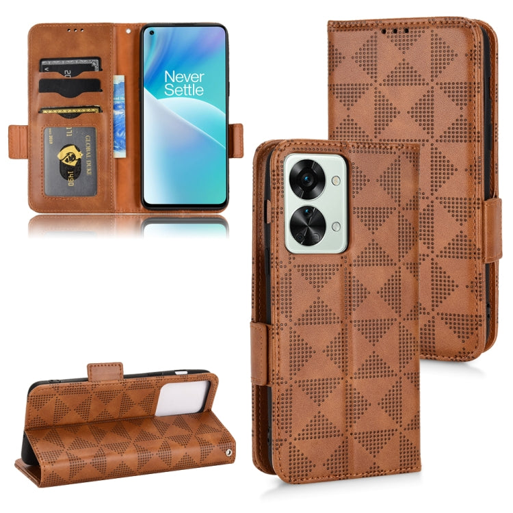Funda de Cuero para OnePlus Nord 2T 5G con Triángulo Simétrico (Marrón)